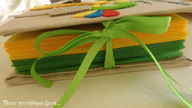 Δεν είναι υπέροχο;; Μέσα πήρε την πρωτοβουλία να μου βάλει κίτρινες και πράσινες σελίδες, επιλογή που πραγματικά με ξάφνιασε ευχάριστα και έδεσε υπέροχα με το πάρτι μας. Ενώ το δέσιμο της είναι πάντα εξαιρετικό, μέσα- έξω!